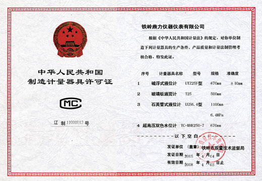 中華人民共和國制造計量器具許可證