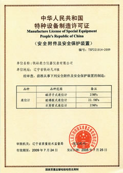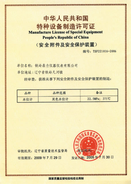 中華人民共和國特種設備制造許可證