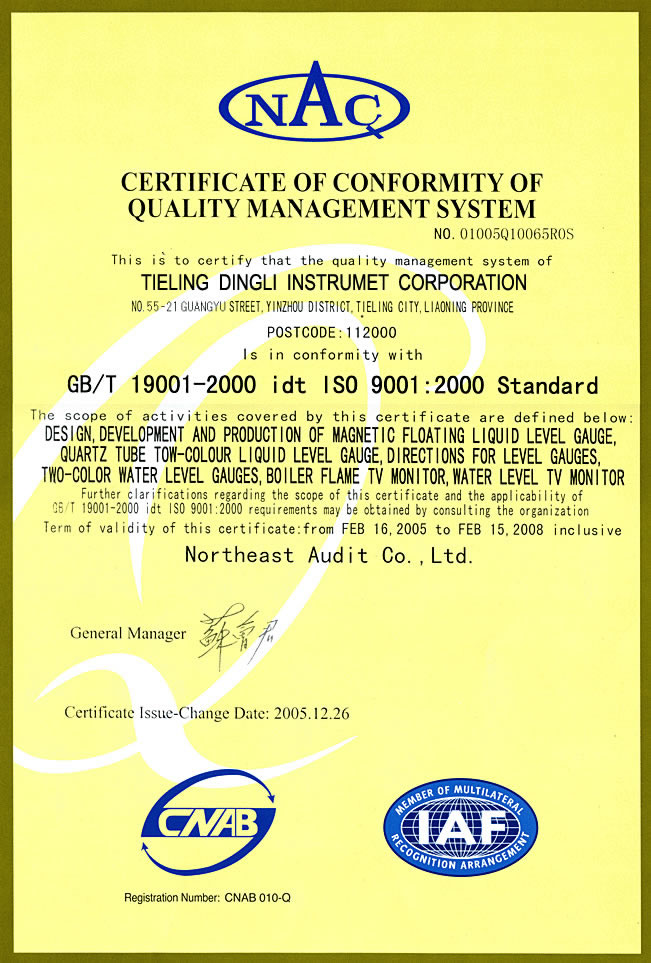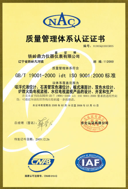 NAC 質量管理體系認證證書